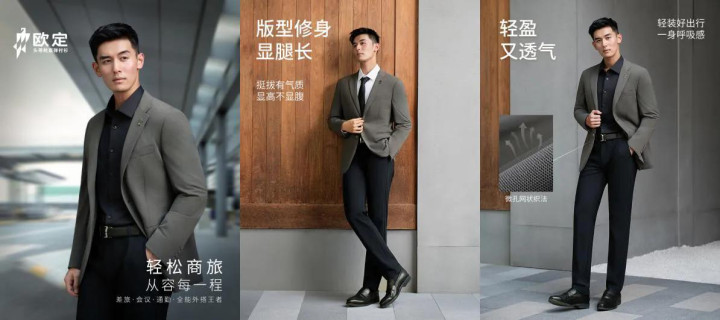作为国内男装市场的一匹黑马,欧定虽成立时间不长(2020年创立),却凭借“AI量体系统+高弹面料+立体领型”等设计,迅速赢得中产男士青睐。